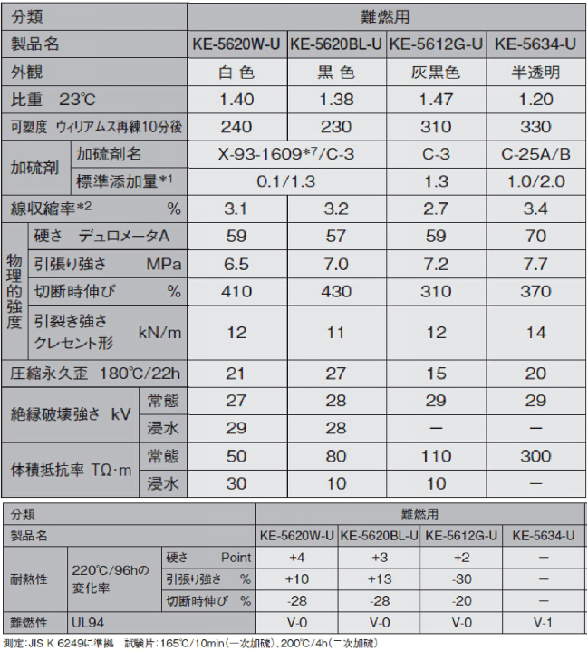 信越硅胶原材料KE-5612G-U、KE-5620-U系列日本信越硅胶特别研制的阻燃胶,灰黑色,通过UL94V0高阻燃级别,KE-5634-U,半透明,通过UL94V1阻燃级别,用于电缆,家电,汽车点火线,电机等各种领域的绝缘,耐热和阻燃